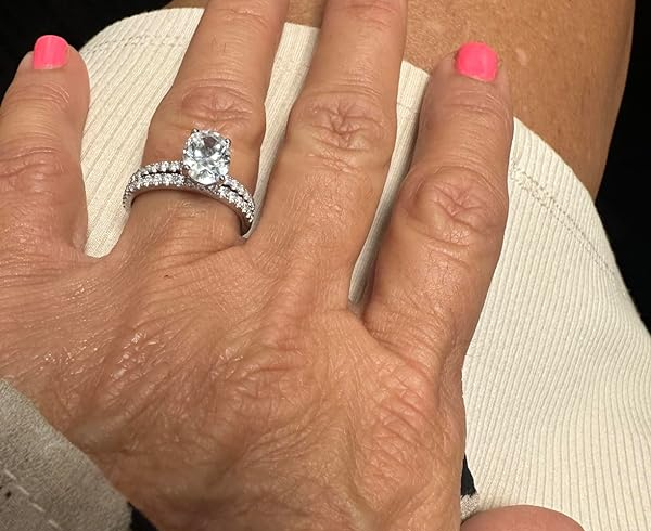 I bought this to wear on vacation so I didn’t have to risk my real wedding ring. It’s so pretty! I got a ton of compliments! And my family couldn’t tell the difference between this set and my real set!